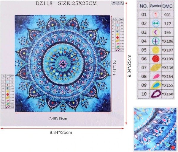 Kit De Pintura Con Diamantes Diamond Painting Bastidor 30X30cm Mandala - Rosa