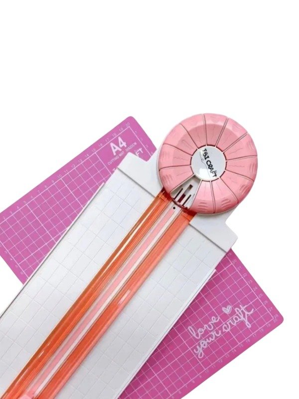 Girá el disco superior hasta elegir el borde deseado, coloca el material bajo la guía transparente y deslizá la cuchilla de arriba hacia abajo.